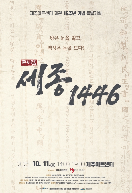 [뉴스스텝] 제주아트센터는 개관 15주년을 맞아 대형 창작 뮤지컬 ‘세종, 1446’을 10월 11일 오후 2시와 7시 특별기획 공연으로 선보인다.