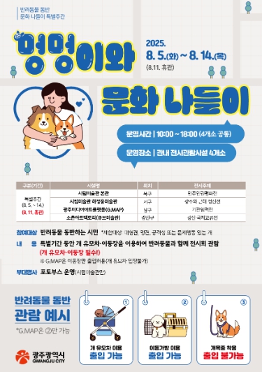 [뉴스스텝] 광주광역시는 오는 8월 5일부터 14일까지(휴관일 11일 제외) ‘반려동물 동반 문화나들이 특별주간’을 운영한다.