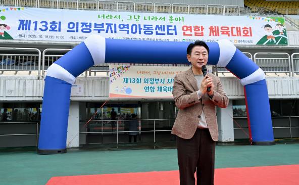 ▲ 김동근 시장이 10월 18일 ‘제13회 의정부시 지역아동센터 연합체육대회’에서 인사말을 하고 있다. |