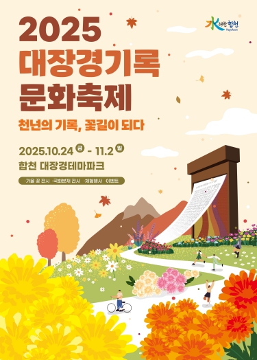 [뉴스스텝] 합천군은 10월 24일부터 11월 2일까지 10일간, 합천 대장경테마파크 일원에서 '2025 대장경기록문화축제'를 개최한다. 이번 축제는 “천년의 기록, 꽃길이 되다”라는 주제로, 팔만대장경의 기록문화 가치를 아름다운 가을꽃 조형물 전시와 다채로운 체험행사를 통해 관광객을 맞이할 계획이다.