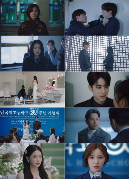 그런가 하면 협박에 시달리던 김혜인(이은샘 분)은 결국 율희에게, 학교 30주년 기념식 겸 백제나(김예림 분)와 차진욱(김민규 분)의 약혼식에서 해인의 옥상 추락 사건의 범인이 제나라고 폭로하겠다고 전했다. 기회균등 장학생 자격으로 축사 연설을 맡게 된 점을 이용하려 했던 것.