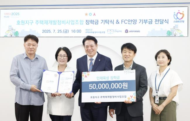 안양시 인재육성재단 최대호 이사장은 “호원지구 주택재개발정비사업조합의 따뜻한 나눔에 깊이 감사드린다. 기탁해주신 소중한 장학금은 우리 지역 학생들에게 큰 힘과 격려가 될 수 있도록 공정하고 투명하게 전달하겠다”고 말했다.