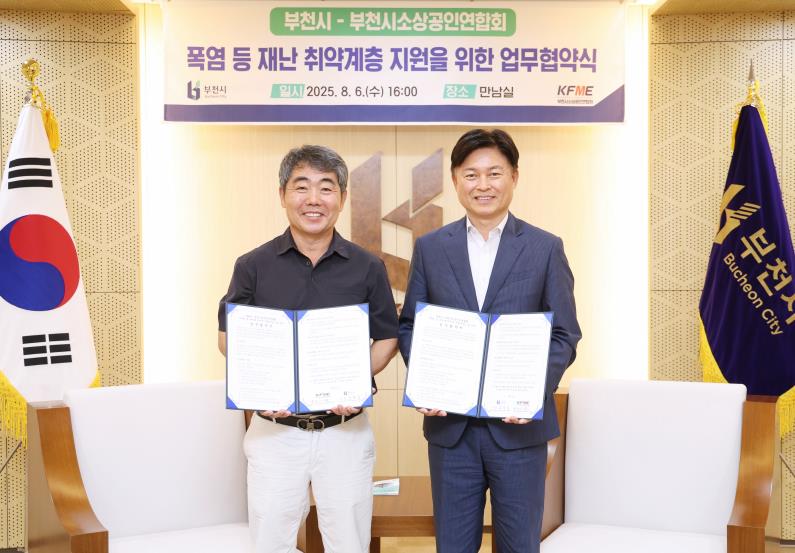 [뉴스스텝] 부천시는 지난 6일 부천시소상공인연합회와 ‘재난취약계층 지원사업’ 업무협약을 체결하고, 폭염 등 재난에 취약한 옥탑방, 반지하 거주자 및 영세 소상공인을 지원하는 민관 협력 사업을 본격 추진한다고 8일 밝혔다.