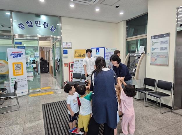 ▲ "작은 손으로 큰 실천" 아이튼튼어린이집, 수원시 팔달구 화서1동 행정복지센터에 우유팩 반납하며 자원순환 실천 |