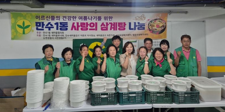또한, 만수1동 새마을협의회‧부녀회는 같은 날 소외된 이웃을 돕기 위해 만수1동 행정복지센터는 통해 삼계탕 100개를 추가 기부했다.
