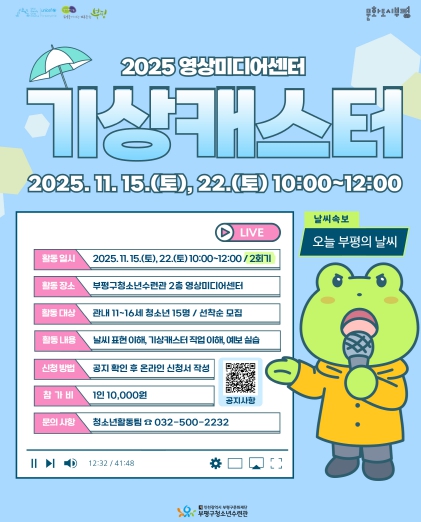 [뉴스스텝] 부평구 청소년수련관이 ‘기상캐스터 직업 특강’에 참여할 청소년을 모집한다.
