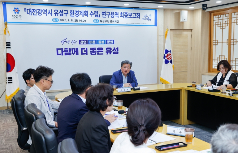 정용래 유성구청장은 “최종 보고회에서 나온 의견을 환경계획에 반영해 체계적이고 실효성 있는 정책으로 완성하겠다”라며 “주민이 일상에서 변화를 체감할 수 있는 환경 정책을 실현해 지속 가능 도시로 만들겠다”라고 말했다.