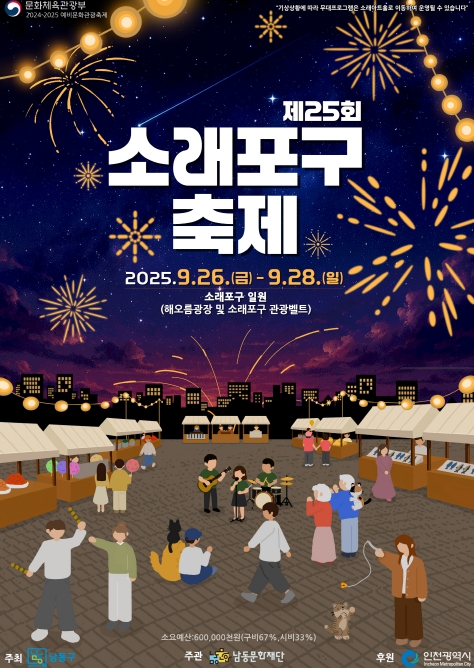[뉴스스텝] 인천시 남동구와 남동문화재단은 오는 9월 26~28일까지 사흘간 열리는 ‘제25회 소래포구 축제’의 먹거리 정보를 사전에 투명하게 공개한다고 22일 밝혔다.