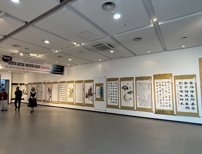 [뉴스스텝] 한국예술문화단체총연합회 금산지회(회장 이정일)가 주최, 한국미술협회 금산지부(지부장 윤은중)가 주관하는 제3회 대한민국 금산인삼 서예문인화 공모대전이 지난 20일 금산인삼관 지하 갤러리에서 성황리 진행됐다.