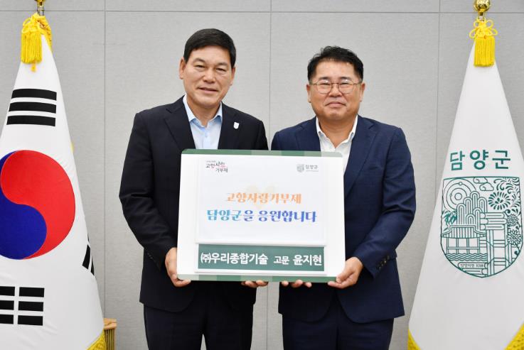 [뉴스스텝] 담양군은 ㈜우리종합기술이 담양군청을 방문해 고향사랑기부금 1천3백여만 원을 전달했다고 26일 밝혔다.