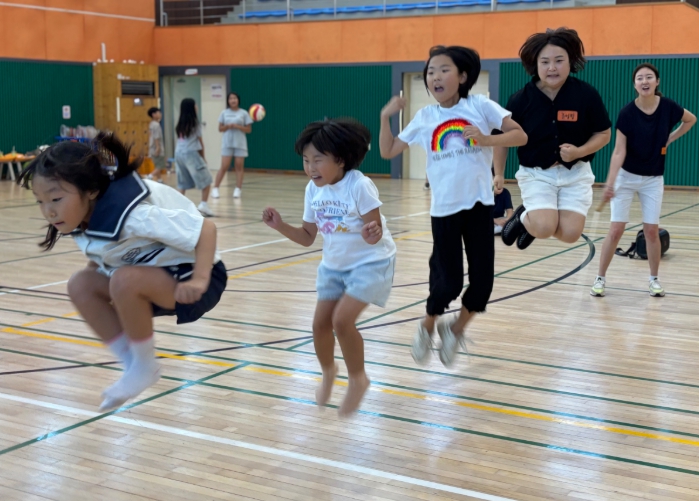보호자들은 먼저 딱지치기, 줄넘기, 오징어 게임 등 전통 놀이를 체험한 뒤 중간 놀이와 점심 놀이 시간에 체육관에서 아이들과 함께 놀이에 참여했다.
