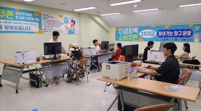 군은 군민 편의를 위해 주소지와 관계없이 가까운 읍면 행정복지센터에서 소비쿠폰을 신청할 수 있도록 하고 있으며, 평일 방문이 어려운 군민은 주말과 야간에도 사전 예약으로 신청할 수 있다. 특히 온라인 신청이 어려운 군민은 해당 행정복지센터에 찾아가는 신청을 요청할 수 있다.
