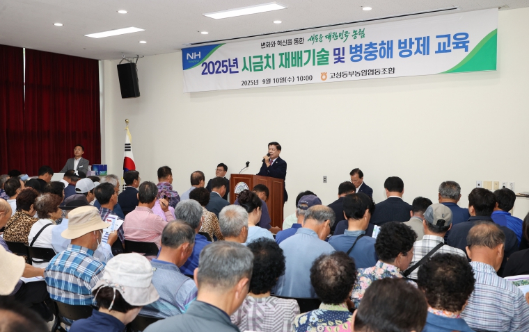 [뉴스스텝] 고성군은 9월 10일, 고성동부농업협동조합(조합장 천재기) 주관으로 거류면 복지회관에서 열린 동부권역(동해면, 거류면) 시금치 재배농가 교육에 참석하여 농가들을 격려하고 애로사항을 청취했다.