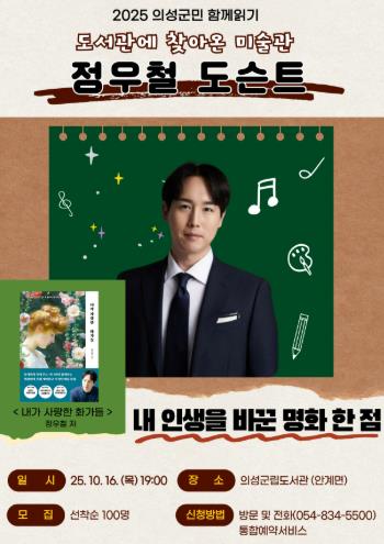 한편, 이번 강연 외에도 △10.25. 청소년들을 위한 과학강연'10월의 하늘' △11.27. 2025'의성군민 함께읽기: 작가를 만나다' 이준영 저자강연'2026 트렌드 코리아'등 다양한 독서진흥 프로그램을 운영할 예정이다.