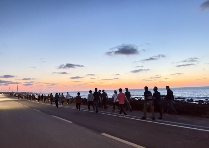 [뉴스스텝] 서귀포시는 일상생활 속 1일 7천 보 걷기 활성화를 위하여 11일 새벽 5시 신산리 마을주민들과 함께하는 '힐링 UP! 혼디모영 걸을락(樂)' 신산마을걷기를 운영했다.
