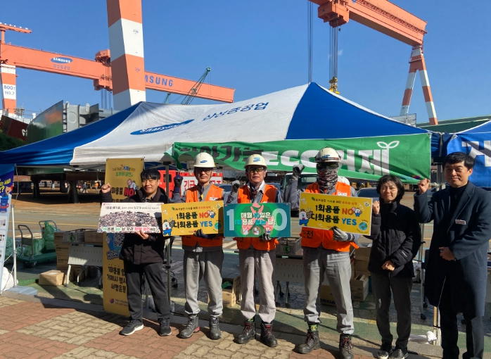 홍보부스는 조선소 내 유동 인구가 많은 직원식당 인근에 설치해 △1회용품 사용 줄이기 △폐건전지 교환사업 △자원순환 시책 등을 집중 홍보했다.