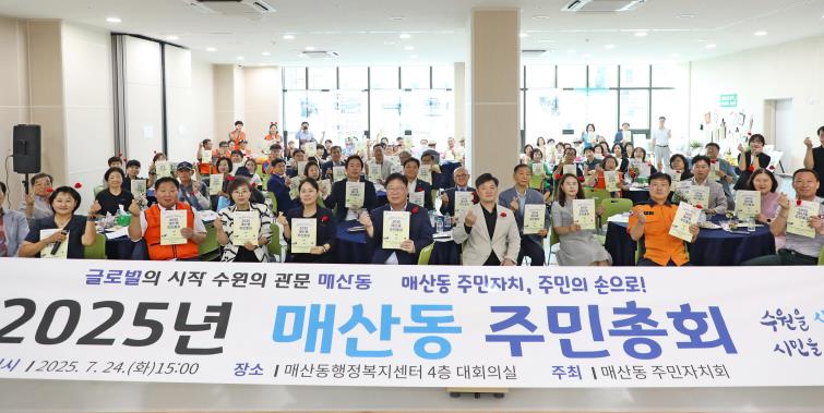 [뉴스스텝] 수원시 팔달구 매산동 주민자치회는 지난 24일 매산동 행정복지센터 대회의실에서 ‘2025년 매산동 주민총회’를 성황리에 개최했다. 이번 총회에는 지역 주민 100여 명이 참석해 높은 관심과 참여 열기를 보였다.