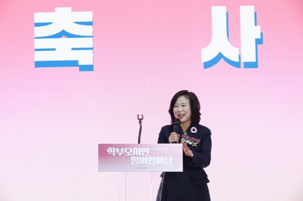 ▲ ‘2025 서울교육 학부모·시민 참여한마당’에서 축사하는 이새날 의원