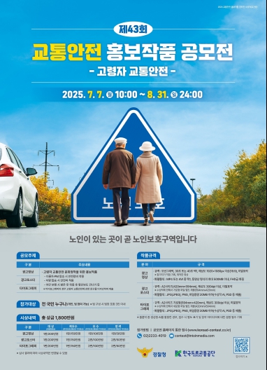 한국도로교통공단 소통홍보처 관계자는 “고령자 교통안전에 대한 관심을 높이기 위해 개최하는 국민 참여형 홍보작품 공모전에 많은 참여 바란다”고 말했다.