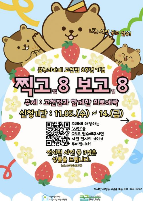 [뉴스스텝] 의왕시청소년재단 산하 꿈누리카페 고천점이 개소 8주년을 맞아 추진 되는 청소년과 지역 주민이 함께하는 기념 프로그램‘찍고8, 보고8’의 참가자를 11월 14일까지 모집한다.