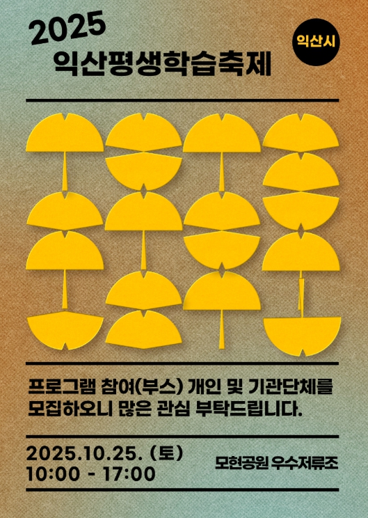 [뉴스스텝] 익산시가 시민과 함께 배우고 나누는 '2025 익산평생학습축제'를 빛낼 체험홍보관 부스와 무대공연팀을 모집한다고 25일 밝혔다.