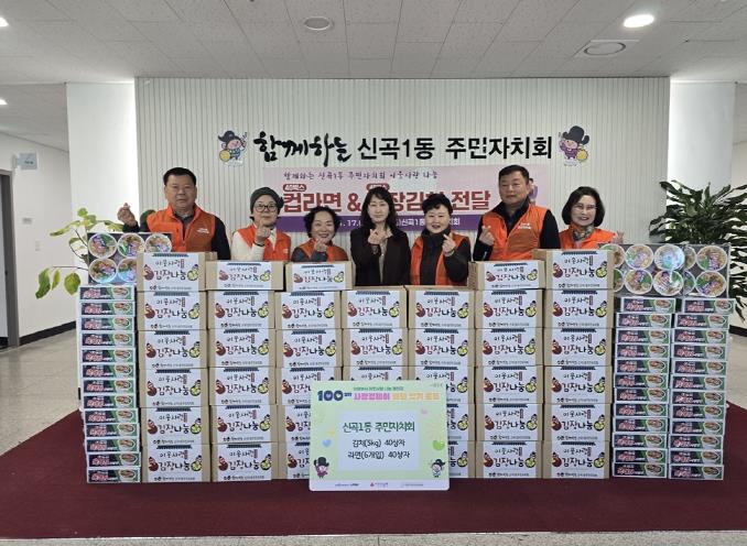 [뉴스스텝] 의정부시 신곡1동주민센터는 11월 17일 신곡1동 주민자치회가 ‘100일간 사랑의 릴레이 배턴 잇기’에 동참해 취약계층을 위한 김장김치 40상자(5kg 단위)와 컵라면 40상자(6개입)를 기부했다고 밝혔다.