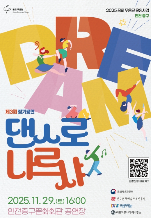 [뉴스스텝] (재)인천중구문화재단은 2025년 꿈의 무용단 인천 중구 ‘댄스로 나르샤’의 제3회 정기 공연을 오는 29일 오후 4시 인천중구문화회관 공연장에서 개최한다고 밝혔다.