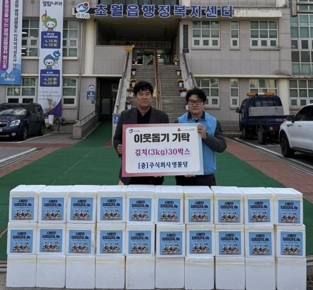 [뉴스스텝] 광주시 초월읍에 소스 제조 공장을 두고 있는 주식회사 명륜당은 지난 21일 김장 김치 30박스를 경기 사회복지공동모금회를 통해 광주시 초월읍에 기탁했다.