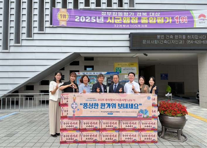 [뉴스스텝] 김천시 남산동에 위치한 하나님의 교회는 19일 추석을 맞이해 평화남산동 행정복지센터에 홀몸어르신·한부모·장애인 가정 등을 위한 식료품 20상자를 전달했다.