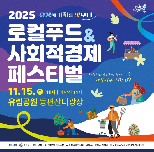 [뉴스스텝] 대전 유성구는 오는 15일 유림공원 동편 잔디광장에서 로컬푸드의 우수성과 사회적경제의 가치를 공유하기 위한 ‘2025 로컬푸드&사회적경제 페스티벌’을 개최한다.