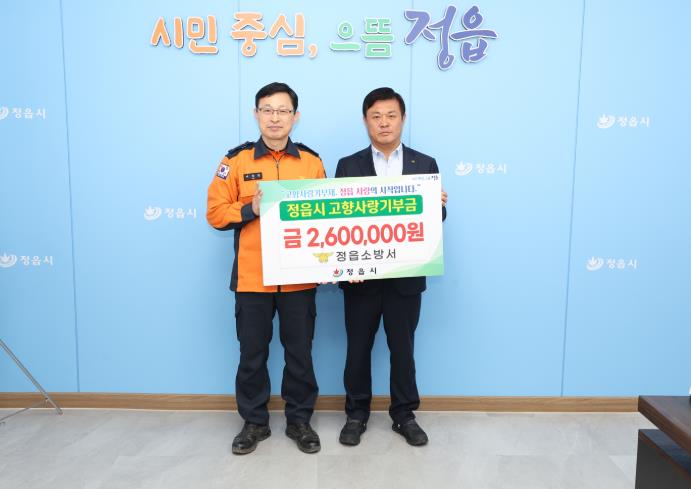 정읍소방서 임직원들은 지난 1일 정읍시청을 방문해 고향사랑기부금 260만원을 전달하며, 안전을 넘어 지역 발전을 위한 따뜻한 동행을 약속했다.