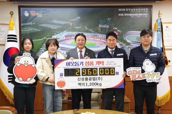 [뉴스스텝] 김해시는 5일 신성중공업(주)에서 제2공장 건립을 기념해 쌀 100포(1,200kg, 296만원 상당)를 기탁했다고 밝혔다.