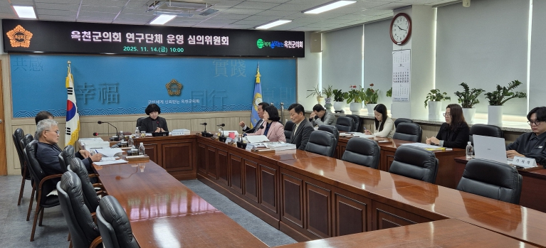 [뉴스스텝] 옥천군의회는 지난 11월 14일 의원 간담회실에서 2025년 옥천군의회 의원연구단체 운영 심의위원회(위원장 조규룡)를 개최하고 2건의 의원연구단체의 연구 활동 결과보고서를 심의ㆍ의결했다고 밝혔다.