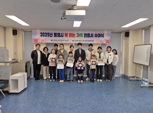[뉴스스텝] 통영시는 지난 12일 ‘2025년 통영시 책 읽는 가족 인증서 수여식’을 개최하고, 꾸준히 도서관을 이용하며 독서 생활화 정착에 기여한 가족들에게 감사의 뜻을 전했다.