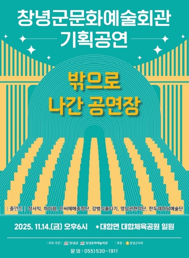 군 관계자는 “이번 ‘밖으로 나간 공연장’은 창녕문화예술회관의 문턱을 낮추고, 문화 복지를 실현하기 위한 적극적인 노력의 일환”이라며, “공연장을 찾기 어려운 군민들에게 다양한 공연을 제공하기 위한 취지이며 매년 지역민들 가까이에서 소통할 수 있는 문화 사업을 확대해 나가겠다”고 전했다.