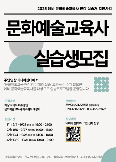 미추홀구 주안영상미디어센터, ‘2025 예비 문화예술 교육사 현장 실습처 지원사업’ 선정
