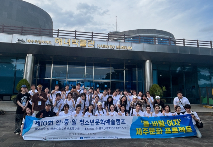 제주 학생들은 캠프 참가 전 ‘동아시아 제주문화클래스’에서 제주 고유문화를 미리 학습했다. 현장에서는 한중일 청소년들이 ‘틀림이 아닌 다름’이라는 철학 아래 서로의 문화를 이해하는 시간을 가졌다.