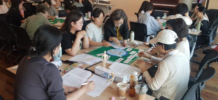 ▲ 2025 고위기청소년 가족상담사 역량강화 아카데미 참가 상담사들이 매체를 활용한 가족상담 기법 실습을 하고 있다. |