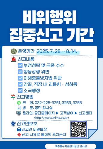 ▲ 미추홀구시설관리공단, 하계 휴가철 비위행위 집중 신고 기간 운영 |