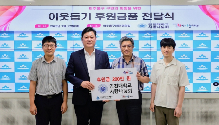 미추홀구, 인천대학교 사랑나눔회로부터 후원금 200만 원 전달받아
