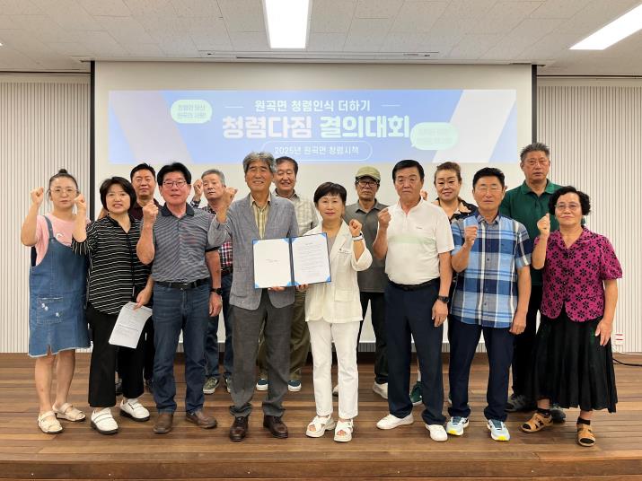 원곡면은 지난달 기관․사회단체 회의에 “청렴한 당신! 원곡의 자랑!” 청렴 표어를 배포하여 지역사회 청렴 문화 확산에 기여하고 있으며 청렴 실천 의지를 강조하고 있다.