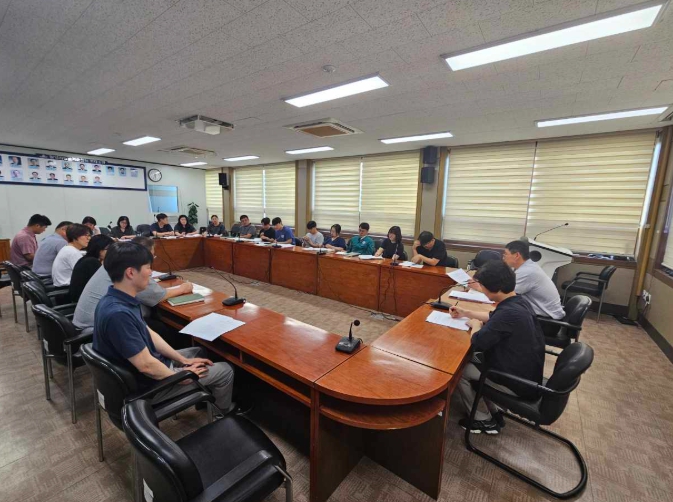 ▲ 지난 22일 농업기술센터 소회의실에서 피해조사 파견 공무원을 대상으로 피해조사 방법 교육을 진행하고 있다. |