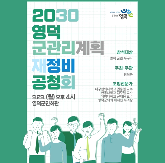 [뉴스스텝] 영덕군은 도시의 지속 가능한 발전과 합리적인 토지이용을 위해 ‘2030 영덕 군관리계획 재정비(안)’ 공청회를 오는 29일 오후 4시 영덕군민회관에서 진행한다.