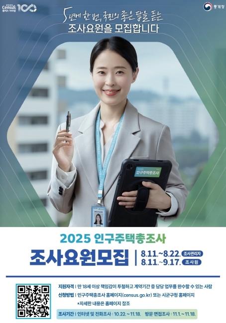 ▲ 2025년 인구주택총조사 조사요원 모집 홍보 포스터. |