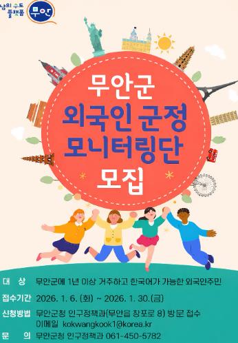 [뉴스스텝] 무안군은 외국인주민의 안정적인 지역 정착과 사회통합을 위해 2026년 '외국인주민 군정 모니터링단'을 신규 모집한다고 밝혔다.