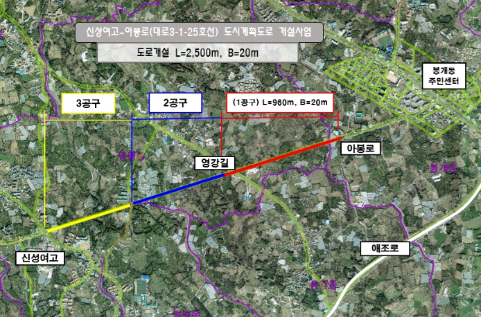 | ▲ 신성여고~아봉로(대로3-1-25호선) 도시계획도로 개설사업 위치도 |