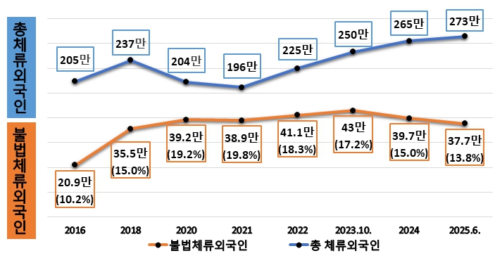 법무부는 2023년부터'불법체류 감축 5개년 계획'을 수립하여 다각적인 상시 단속 체계를 가동하고 있다.