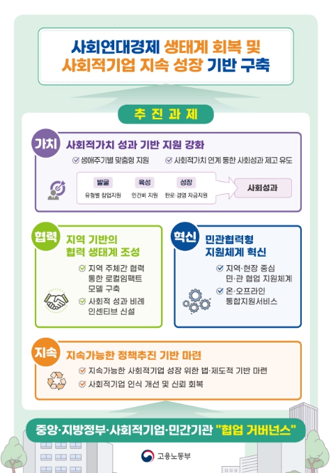 [뉴스스텝] 고용노동부는 가치, 협력, 혁신, 지속가능성을 기본전략으로 제시하고 사회적기업 생태계 회복과 지속가능한 성장 기반 구축에 본격적으로 나선다.