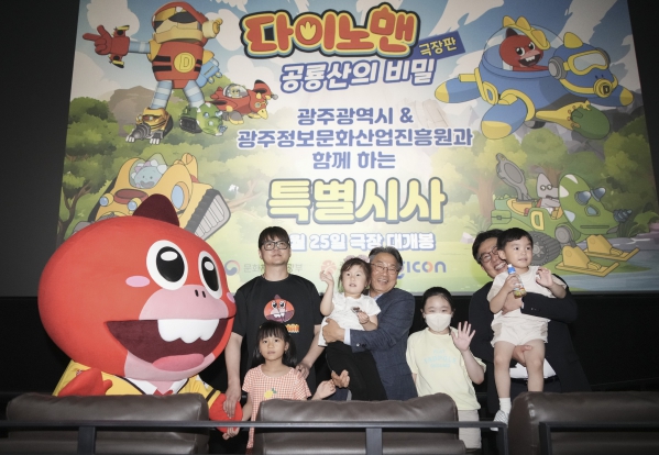 [뉴스스텝] 강기정 광주광역시장이 지난 9일 오후 7시 메가박스 광주상무점에서 공직자 가족 등과 애니메이션 영화 ‘다이노맨: 공룡산의 비밀’ VIP 시사회에 참석해 어린이들과 함께 관람했다.