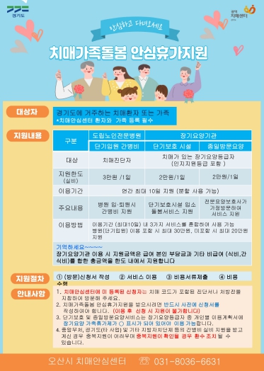 ▲ 오산시 치매안심센터, ‘치매가족돌봄 안심휴가지원’ 상시 운영 |